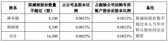 当日,粤海饲料还公告称,公司副总经理、财务总监林冬梅和副总经理韩树林因个人资金需求,拟于2026年1月15日至2026年4月14日以集中竞价交易方式分别减持公司股份不超过8,100股(约占剔除回购专用账户股份后公司总股本的 0.0012%),累计不超过1.62万股,占剔除回购专用账户股份后公司总股本的0.0023%。