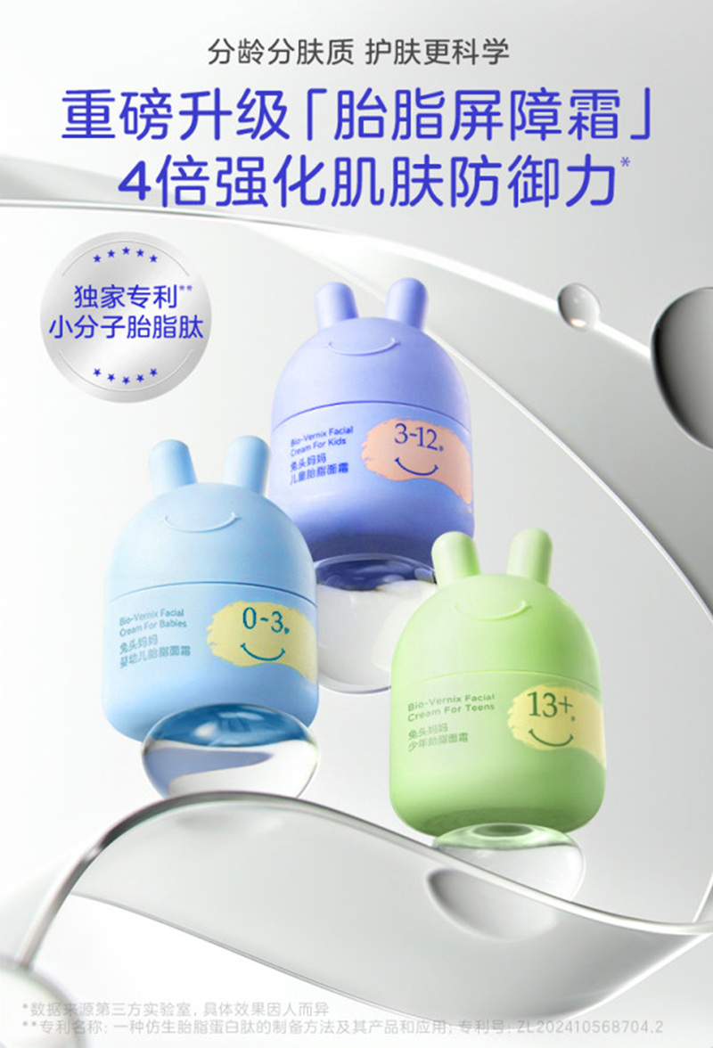 这正是本次合作核心落地举措,在兔头妈妈为雪场家庭游客提供的定制“儿童滑雪护理洗漱包”中,以旗下分龄胎脂屏障霜为例,该产品的背后,其自主研发的仿生胎脂肽,实现对胎脂更完整的模拟及应用,具有抗敏能力提升314%、显著炎症因子水平降低 51%的突破性表现,可以应对秋冬肌肤常见问题“干、痒、湿、红”症状。这也就能帮助孩子们在干燥寒冷的雪场环境中,牢牢锁住水分,构筑起抵御外界刺激的肌肤屏障。这不仅仅是一瓶面霜,更是融入了科技与关怀的“肌肤滑雪服”。
