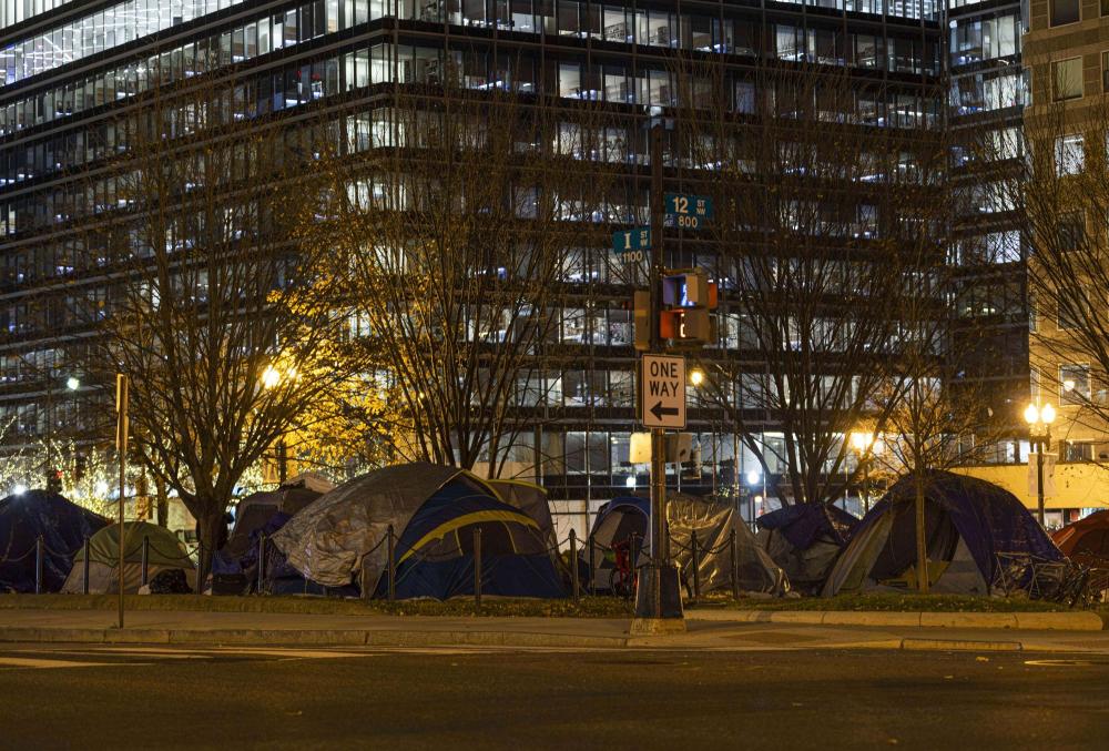 这是2021年12月8日在美国首都华盛顿拍摄的无家可归者居住的帐篷。新华社发
